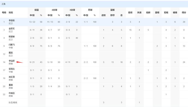 全场比赛李弘权17中14,三分12中10,拿到40分11篮板1盖帽1抢断1助攻,命中率82.3%,三分命中率83.3%,李弘权的个人表现实在是太过于炸裂。